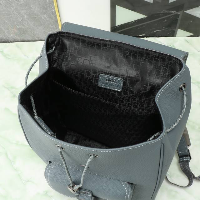 这款马鞍翻盖双肩背包采用时尚的原创设计,突显马鞍风格。深灰色粒面牛皮革搭配对比鲜明的缉面线,正面饰以 Dior 标志。空间宽敞,设有一个隔层,可收纳各种日常用品,正面马鞍翻盖口袋搭配铝扣,可收纳钱包、钥匙、耳机或手机,便于轻松取用。实用百搭,是各式造型的点睛之笔。