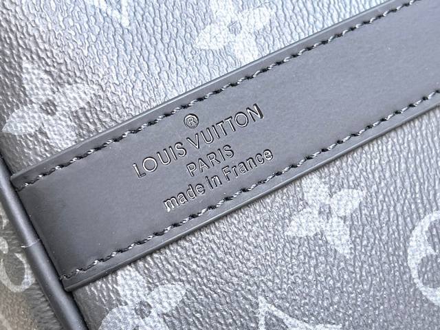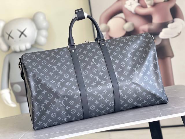 / 顶级原单 M40569+ M40604+ M40605+ Keepall 45,50,55旅行袋,由全新标志性黑灰monogram Eclipse帆布裁制而成。