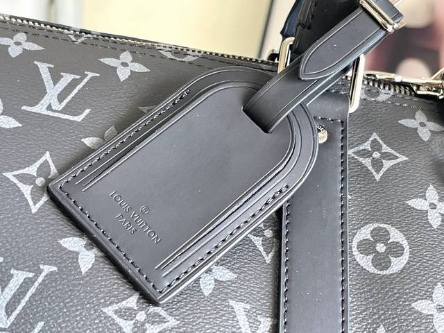 顶级原单 M40569+ M40604+ M40605+ Keepall 45,50,55旅行袋,由全新标志性黑灰monogram Eclipse帆布裁制而成。