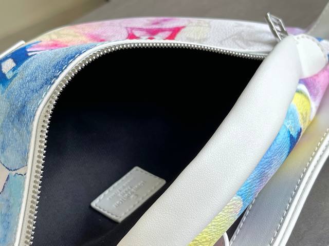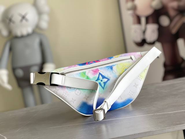 M45759Discovery 小号腰包本款 Discovery 小号腰包沉浸于 Monogram Watercolor Multico 帆布的粉彩意境。前后拉