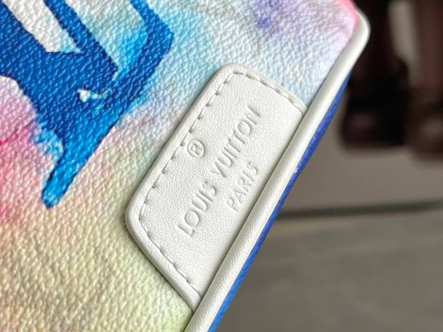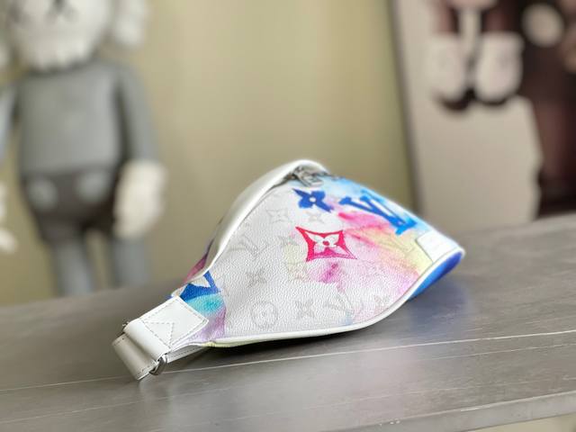 / M45759Discovery 小号腰包本款 Discovery 小号腰包沉浸于 Monogram Watercolor Multico 帆布的粉彩意境。前后拉
