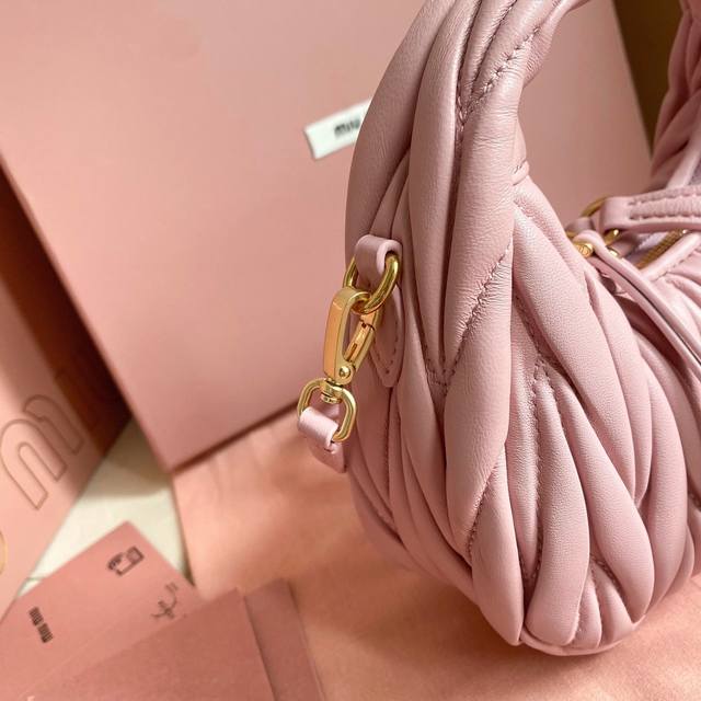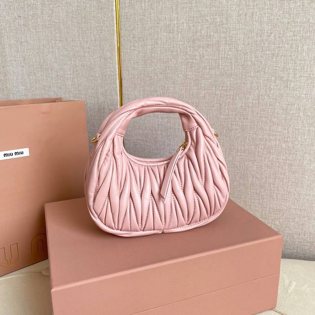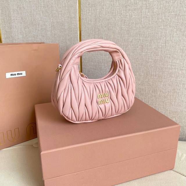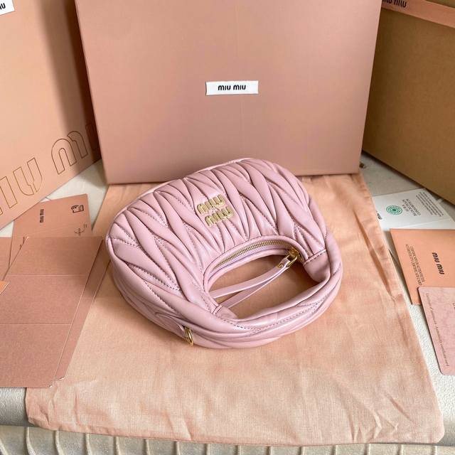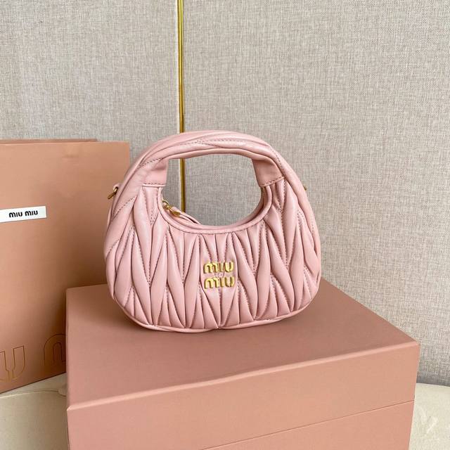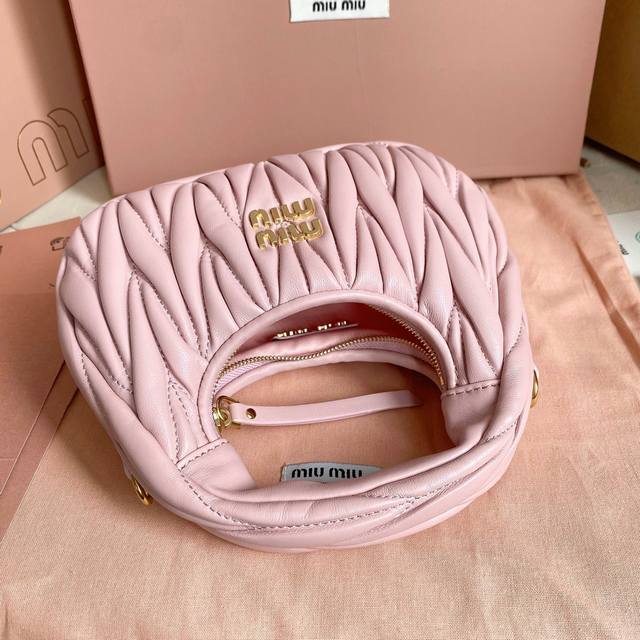 / Miumiu新品迷你miuwander手袋,采用进口小羊皮经典品牌标志性matelasse纹理绣花,复古磨砂五金,利用圆孤的曲线,保留了应有的俏皮感,包型整体硬