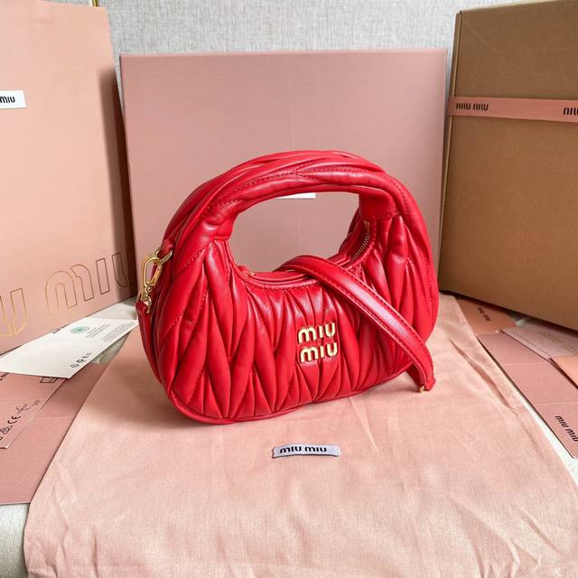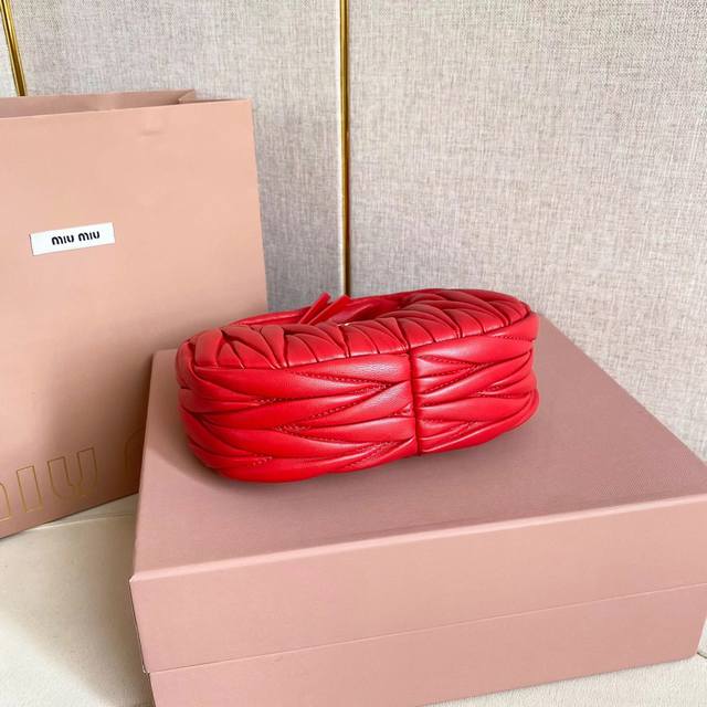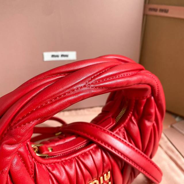 / Miumiu新品迷你miuwander手袋,采用进口小羊皮经典品牌标志性matelasse纹理绣花,复古磨砂五金,利用圆孤的曲线,保留了应有的俏皮感,包型整体硬