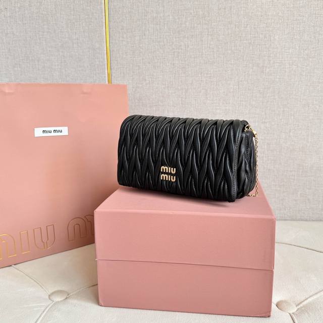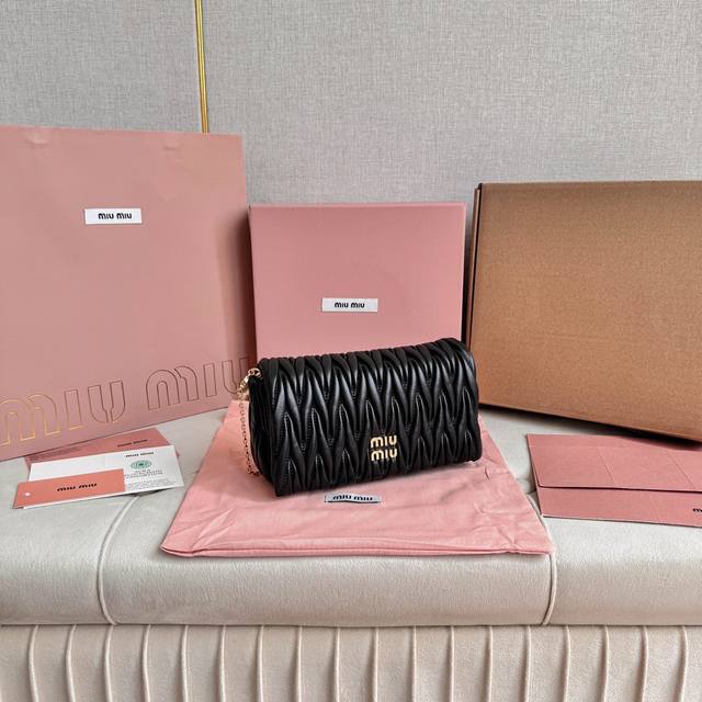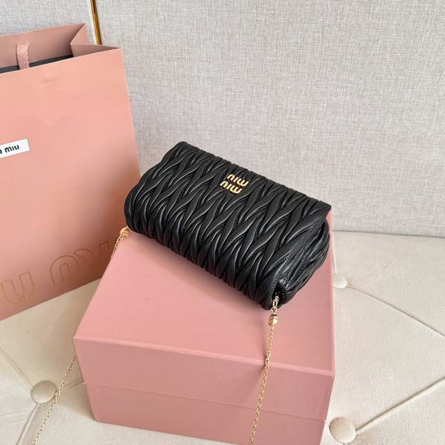 / Miu Mi 新品链条包,顶级进口小羊皮,品牌经典标志性matelasse纹理绣花,新设计可拆卸金属链条长肩带,翻盖吸扣开合,内里一个卡位隔层,绵缎衬里,可手拿