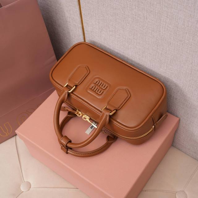 原厂皮:5Bb142,Miu家新款保龄球包包,官网主推,今年绝对爆款式,顶级进口小牛皮,Miu家独具风格matelasse图案,包身精致立体有型,正面刻字徽标与皮革颜色相呼应,可拆卸可调节皮革长肩带,棉质缎面衬里,配拉链式口袋,众多明星网红同款,尺寸22X10.5X7.5Cm,配原版包装,