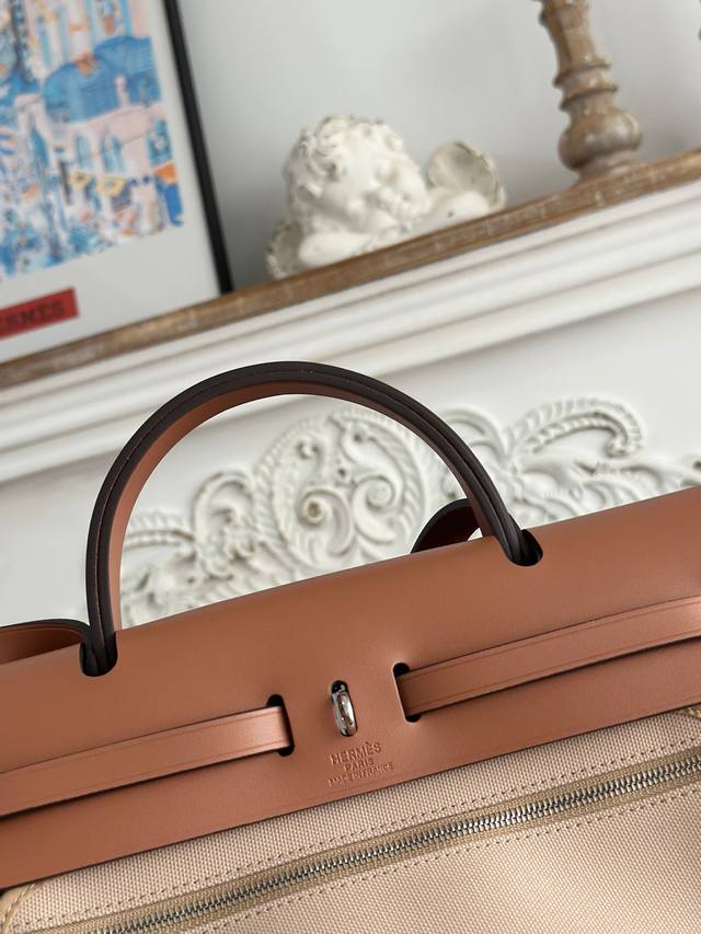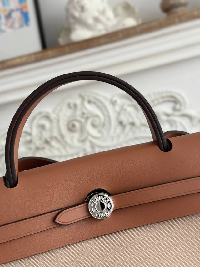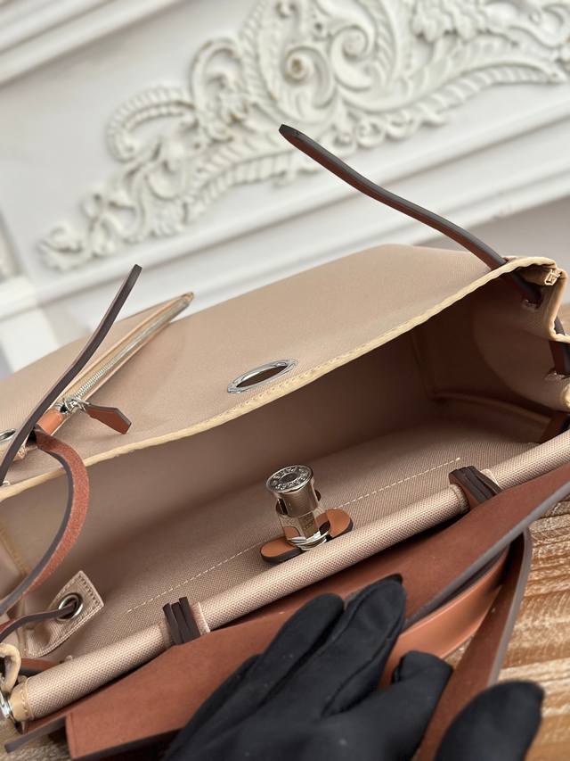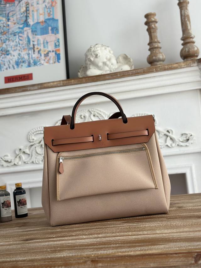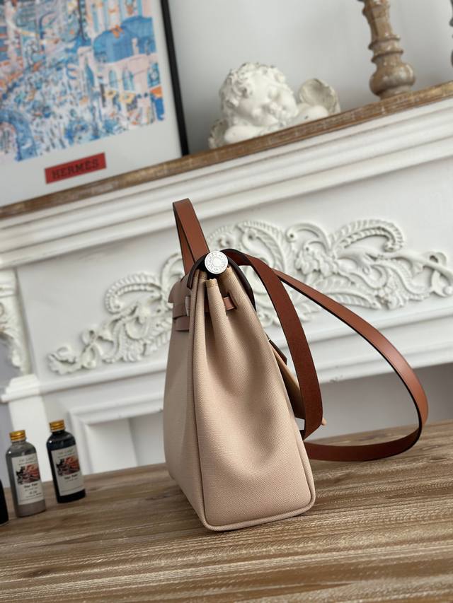 Hermers 爆款herbag 31Cm 设计灵感来自马鞍袋, 包身是帆布材质,内缝 肩带和手提是皮质的, 外形和kelly很像, 但是却比kelly轻很多!