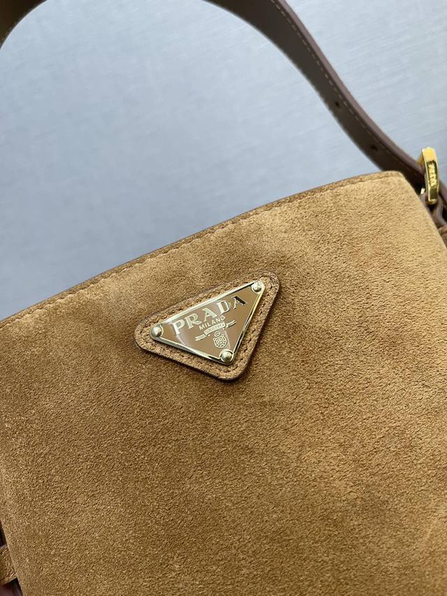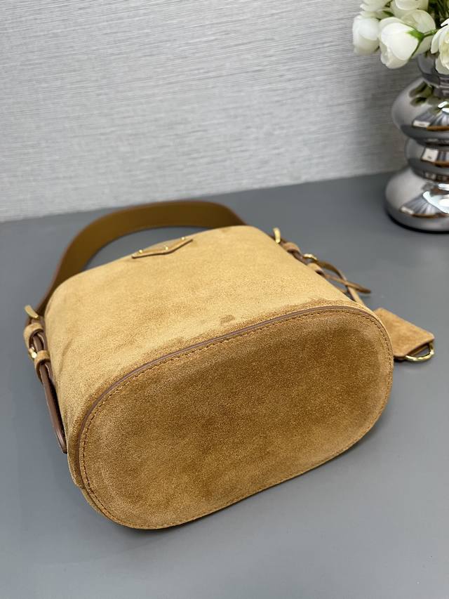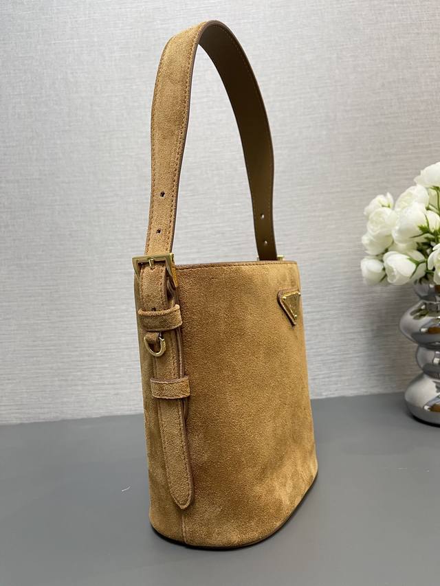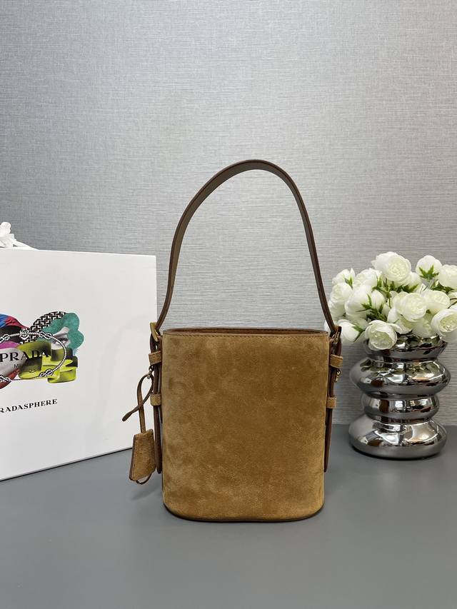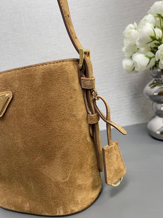 / 正品级 顶级原单 新款水桶包1Be078鹿绒皮小号這款靈活易搭的水桶袋設計極簡,以柔軟的麂皮製作。肩带可调节,内配进口羊皮,答量空间大,上身效果又时尚潮流,冬天