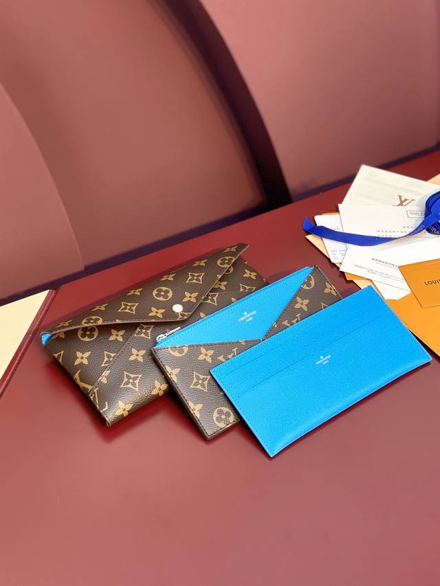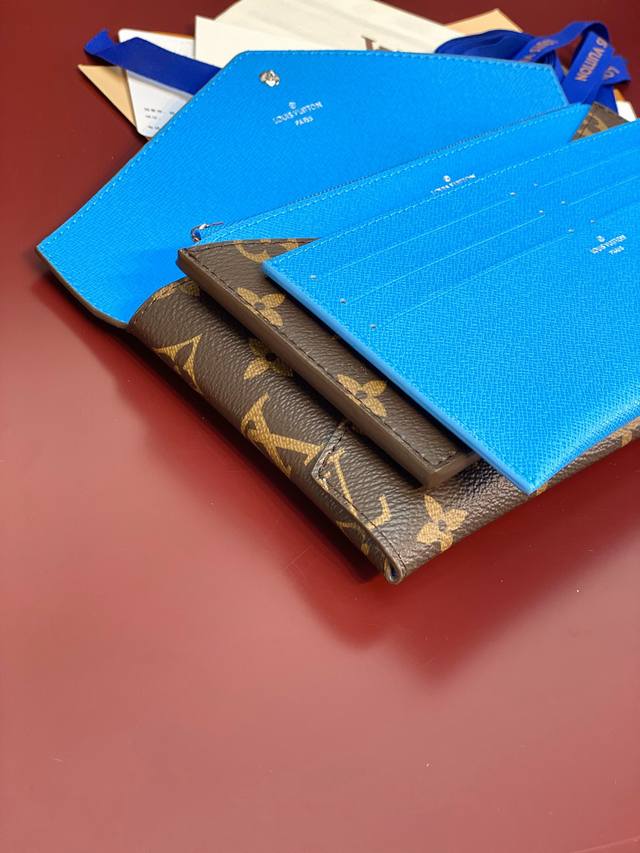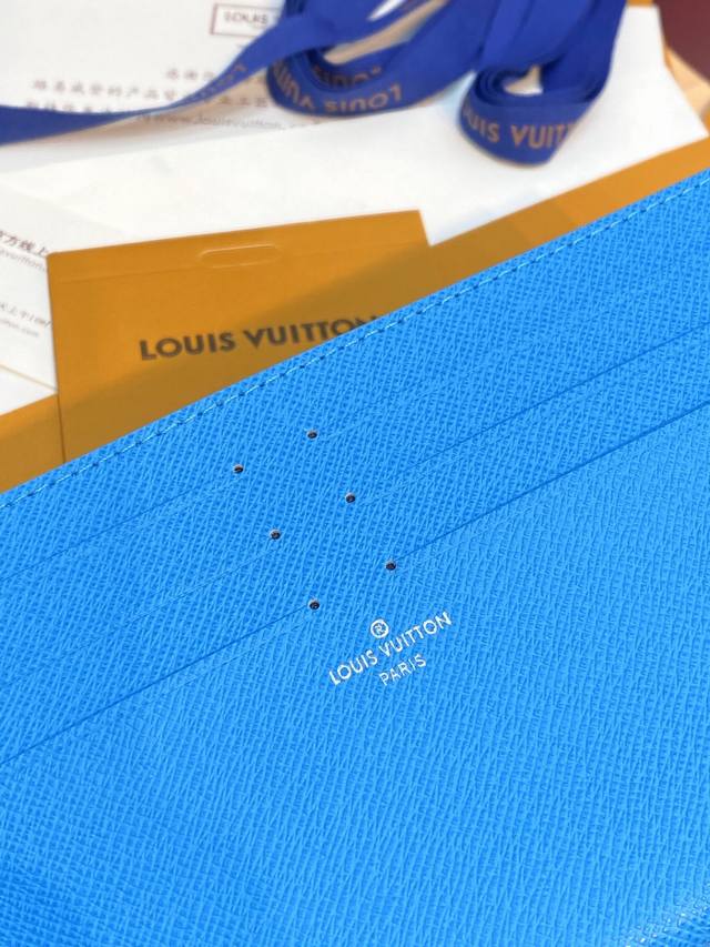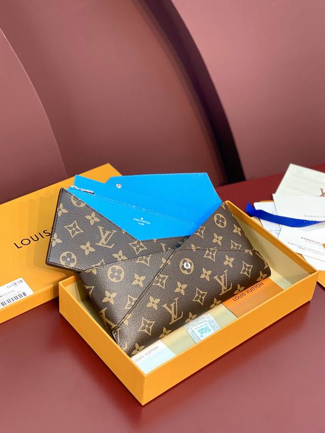 M12359 蓝色!Kirigami 袋裝萬用錢包、這款kirigami袋裝萬用錢包以日本的剪紙藝術而命名,時尚錢包採用標誌性的monogram塗層帆布製作,結合粒面皮革襯裡,增添鮮艷色調。設計配有可拆式拉鏈隔層及一個配有六個名片夾層的可拆式貼袋,十分適合用於存放重要票據。