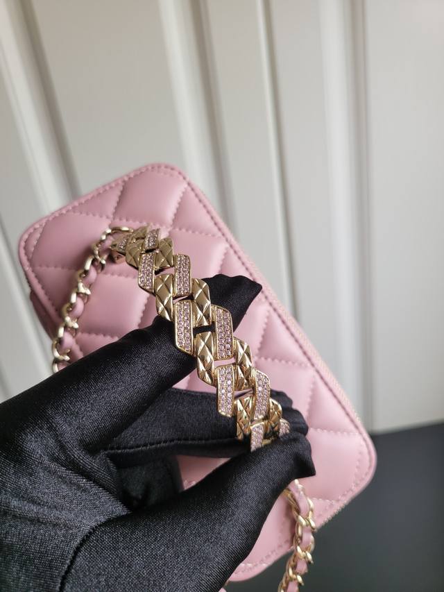 24A限量款钻石手柄 长盒子包 化妆斜跨包配钻手柄 小羊皮金属 五金,手柄精致又贵气,手拎 斜挎 单肩都好看 真的太美了
