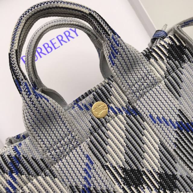 B家顶级原单 最新柔软立挺的托特包,于意大利针织打造,装饰 B家专属格纹。质地轻盈,采用无内衬设计,搭配镌刻马术骑士徽标 Ekd 的按扣 。可拆式可调节斜背带,