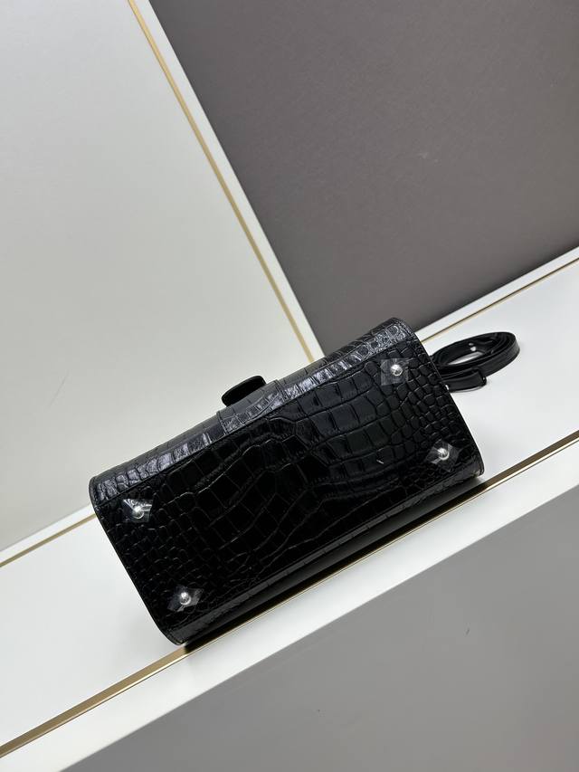 选用纹理清晰压花鳄鱼皮革.立体裁剪.胶合.压印.皮料皮革分切组装.精细繁复工艺.登峰造极 让包身不同压花鳄鱼纹路.凸显层次感,优雅生动.高贵华丽.精美绝伦不凡气质!Dv28鳄鱼纹:Size24 19 12 ,