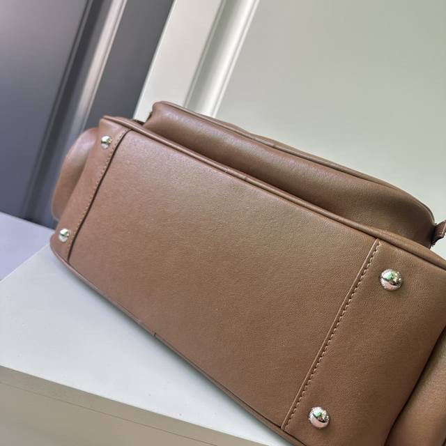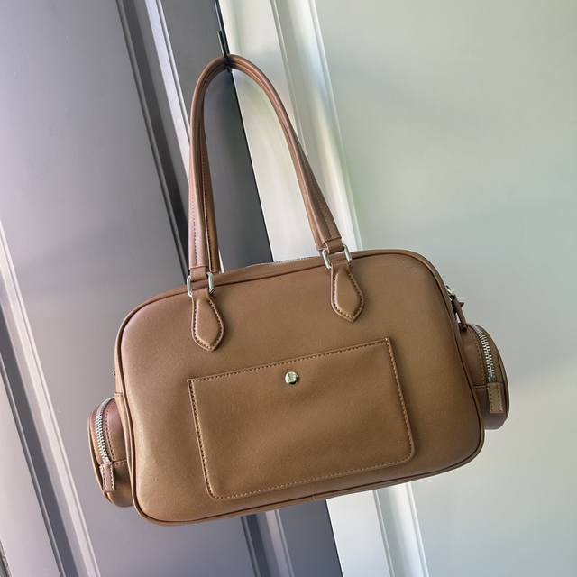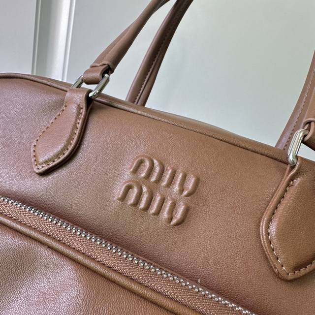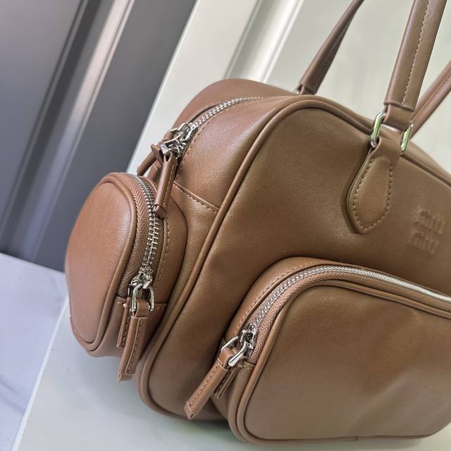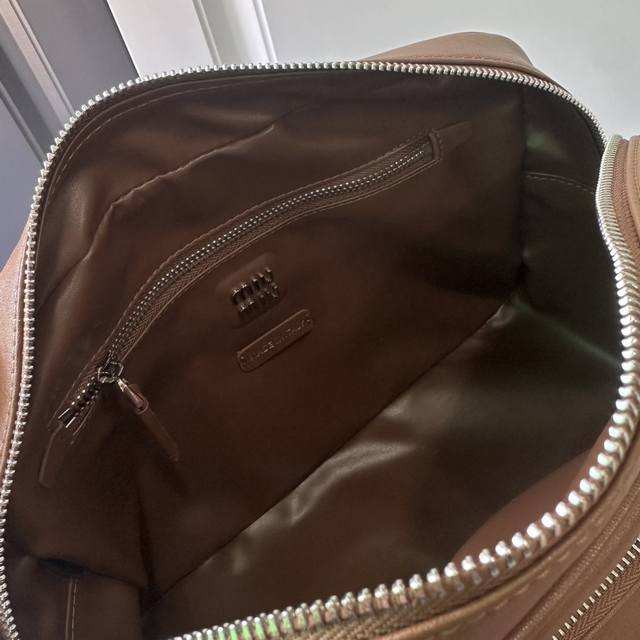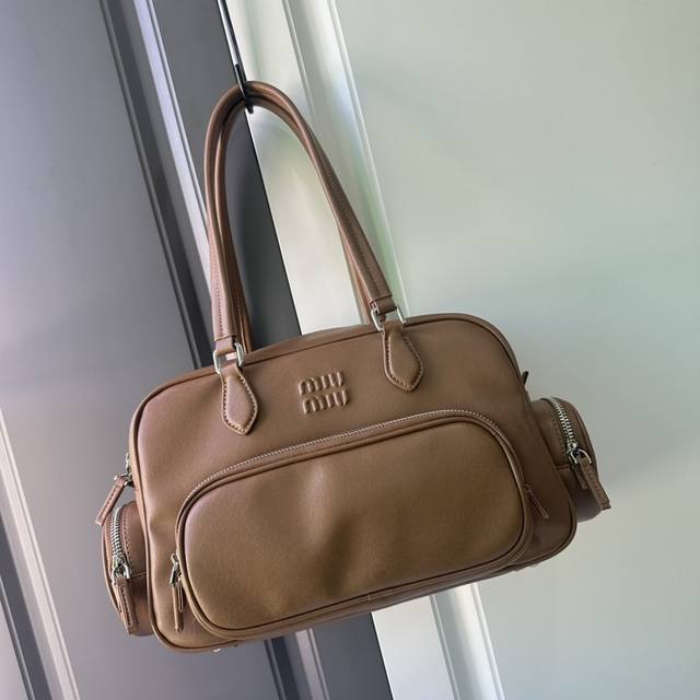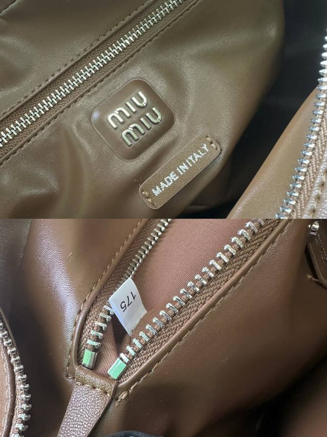 春夏焦点非miu莫属 慵懒不鞍 自由洒脱风格 延续上一季的休闲舒适装扮是不羁的“叛逆少女”包包采用进口小牛皮内外全皮 多口袋设计 经典焦糖配色复古又时髦 男女都适