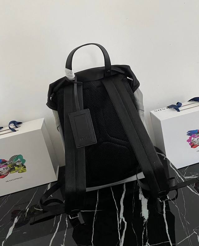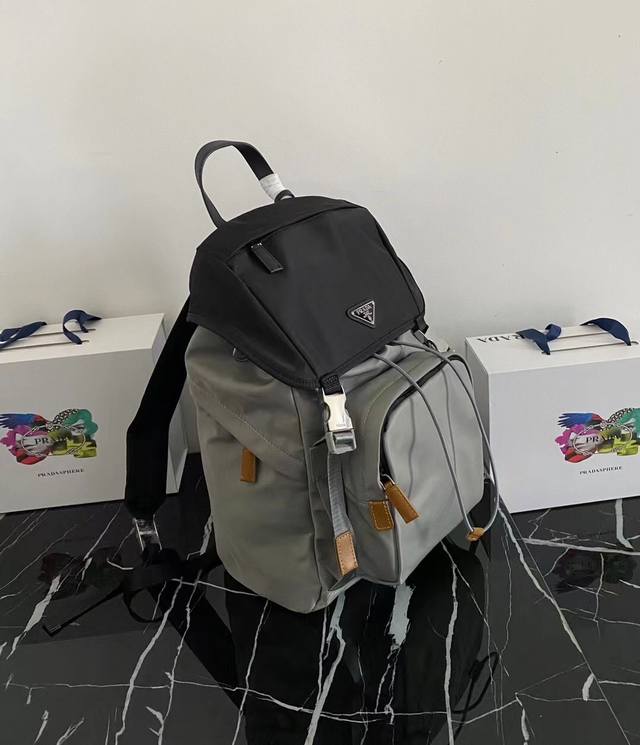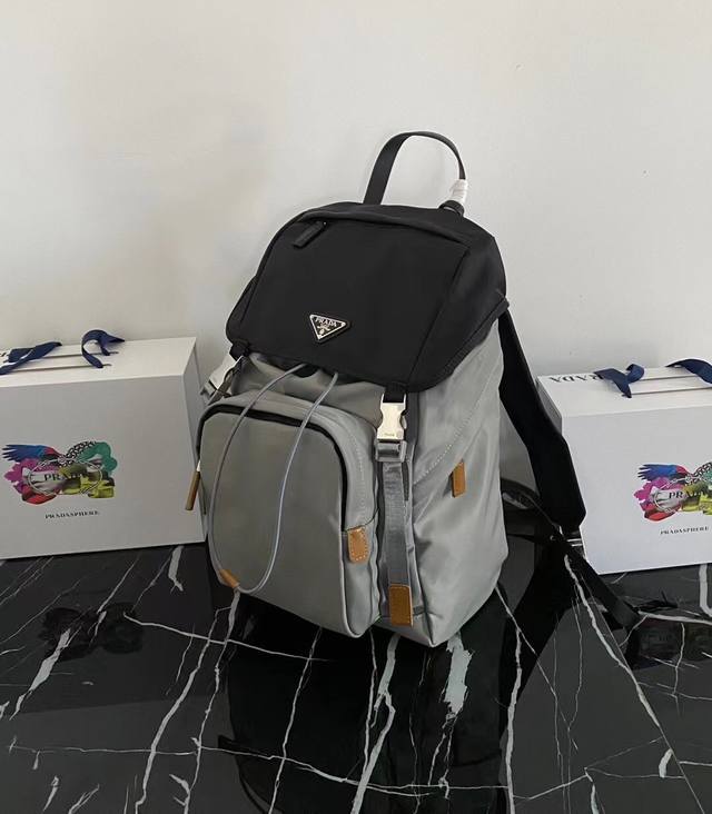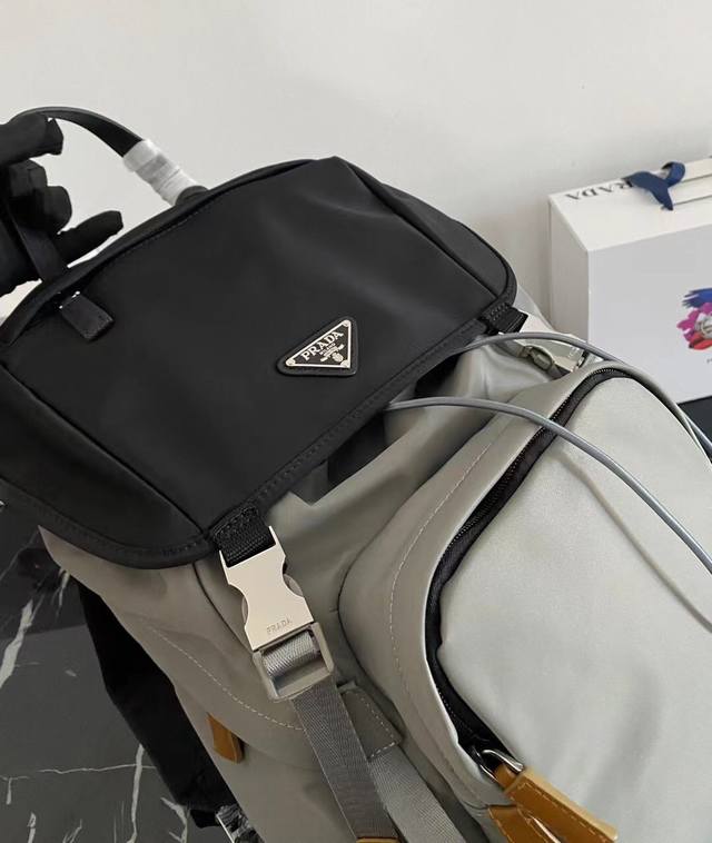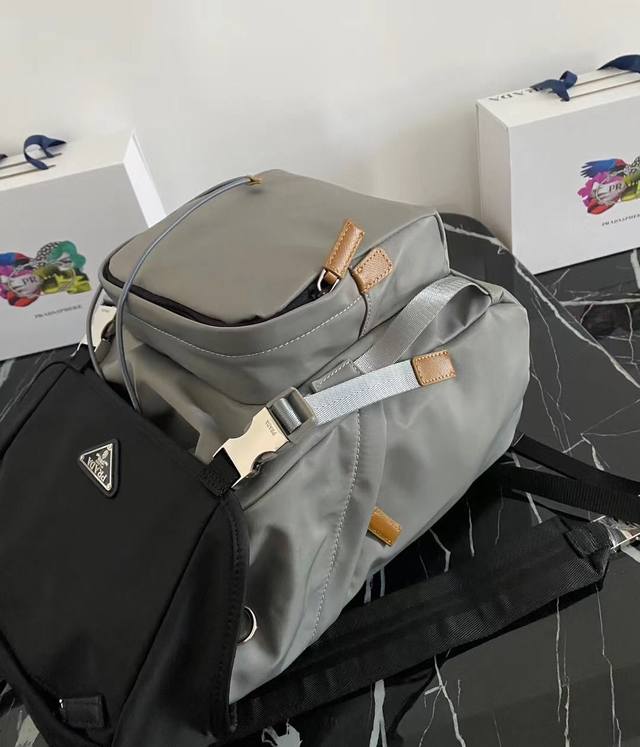 / 独家首发2Vz135黑灰双肩背包最新配色这款尼龙背包饰有saffiano皮革饰边,用创意与科技打造别致格调。顶级拉丝五金多个口袋和科技材质加衬背面颇具设计特色。