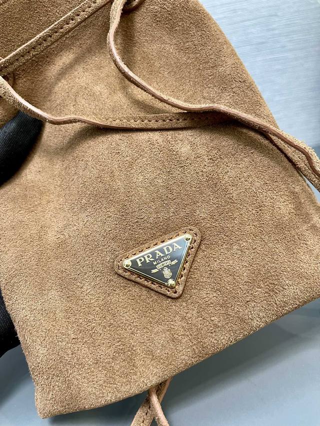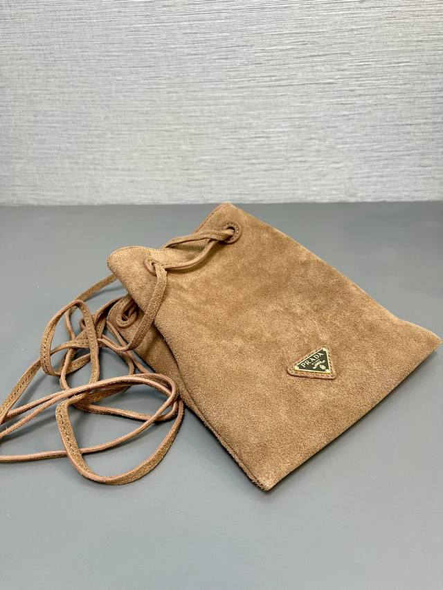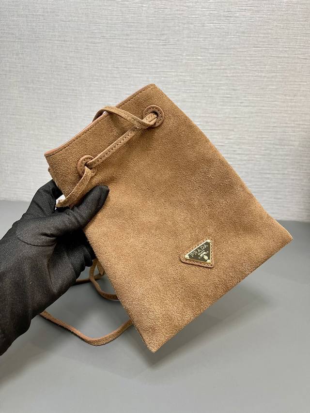 顶级原单 磨砂皮 Mini小斜跨包1Bh221绒皮这款小斜跨包采用进口绒皮和内配进口羊皮,顶级五金,袋口为抽绳缩口袋,双条长肩带设计,上身效果显得格外时尚又休闲