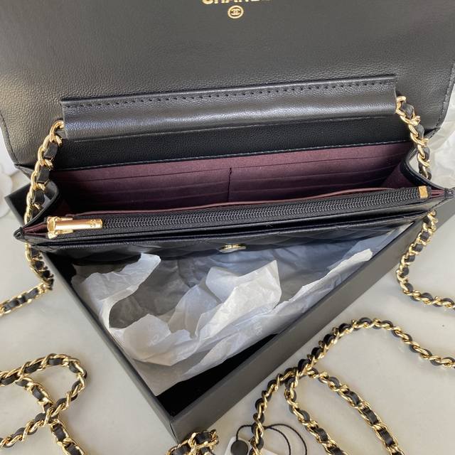/ 春夏新版a0250 Woc发财包小羊皮 经典菱格与皮穿金属链的经典设计,外观与之前的经典woc一样,不同是内里的拉链变成金属,按扣也变成了更加方便的磁铁吸扣,是