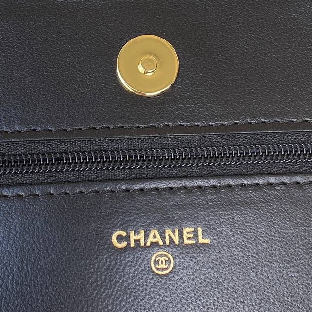春夏新版a0250 Woc发财包小羊皮 经典菱格与皮穿金属链的经典设计,外观与之前的经典woc一样,不同是内里的拉链变成金属,按扣也变成了更加方便的磁铁吸扣,是