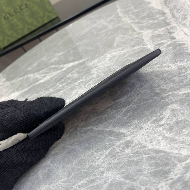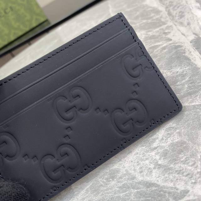 配全套原厂绿盒包装 Gg橡胶效果卡片夹。一系列以黑色橡胶效果皮革打造的男士卡片夹闪亮登场,透过现代美学视角为日常小配饰注入新鲜活力。2024早春系列推出的全新材质为这款设有四个卡片隔层的基础单品注入现代气息。黑色gg橡胶效果皮革,云纹织物衬里,四个卡片隔层。