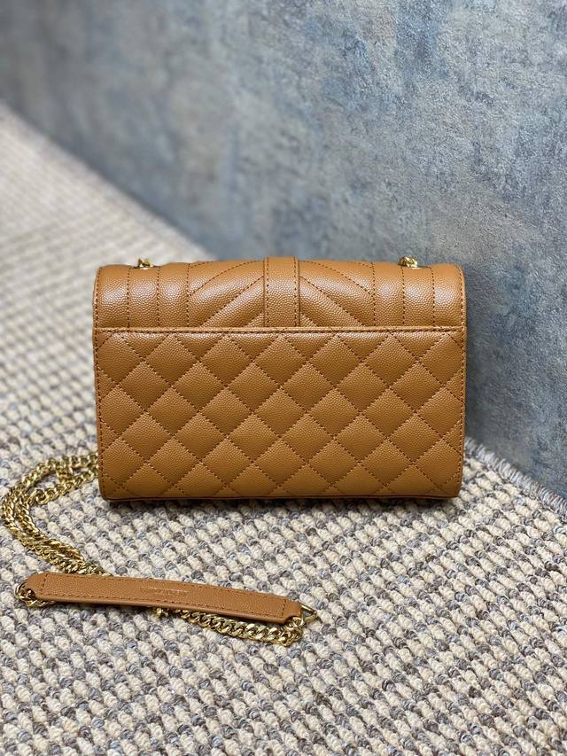 Ysl 新款 真皮球纹小信封包 它以绗缝纹理皮精心制成,配有抛光金色五金件,包括链式肩带和翻盖,方便你随时拿取卡片和其它随身小物。尺寸21X13X6Cm 编码3
