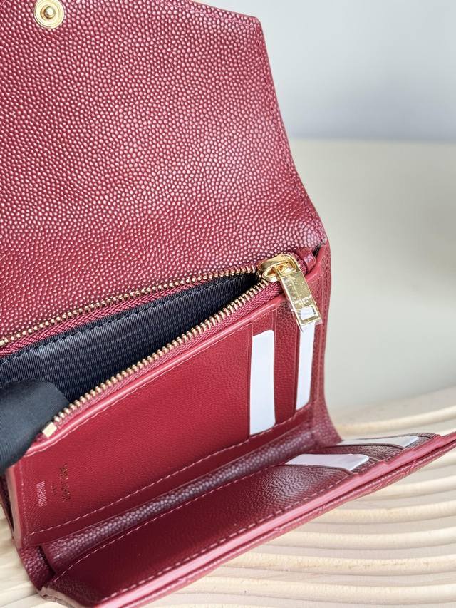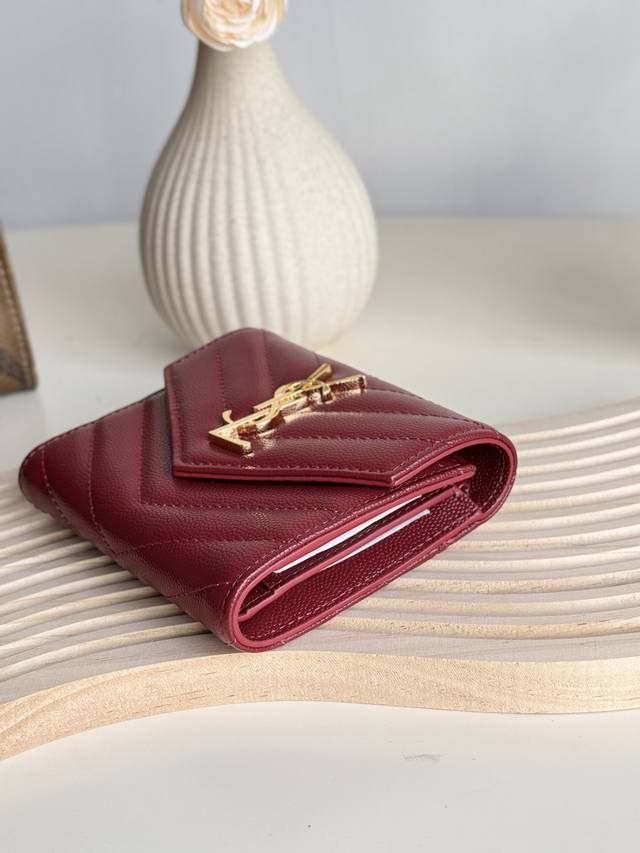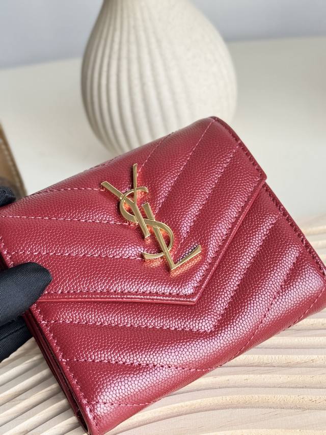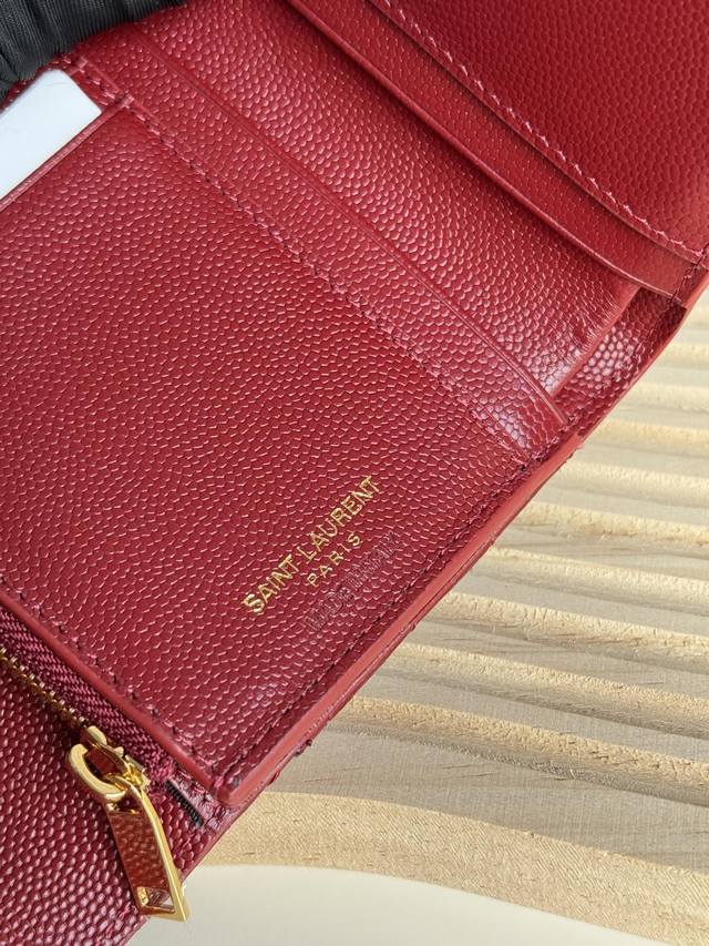 / Ysl-Saint Laurent 配全套专柜最新包装 Slp三折钱包球纹进口牛皮,背面开叉外袋,六个卡片槽,一个拉链袋,一个纸币隔层,四个票据隔层 可手拿,放