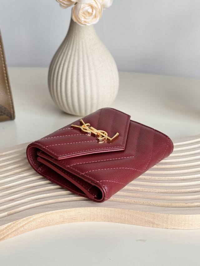Ysl-Saint Laurent 配全套专柜最新包装 Slp三折钱包球纹进口牛皮,背面开叉外袋,六个卡片槽,一个拉链袋,一个纸币隔层,四个票据隔层 可手拿,放