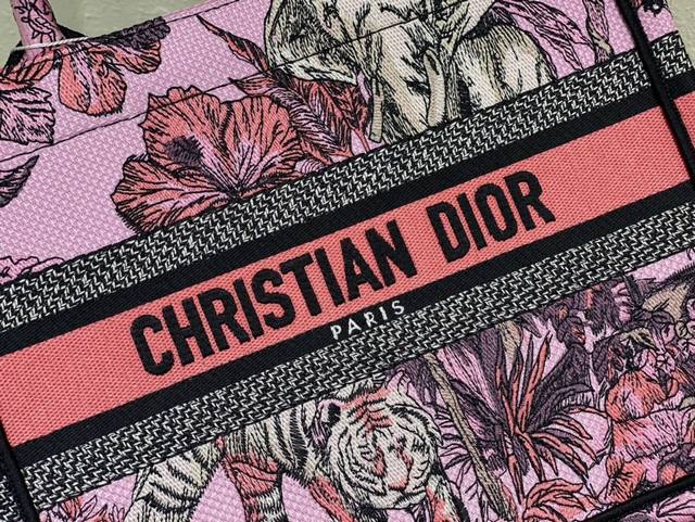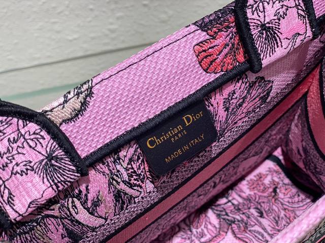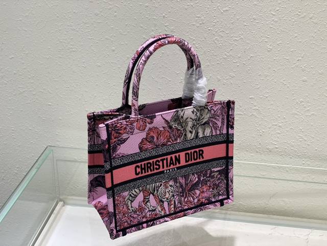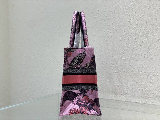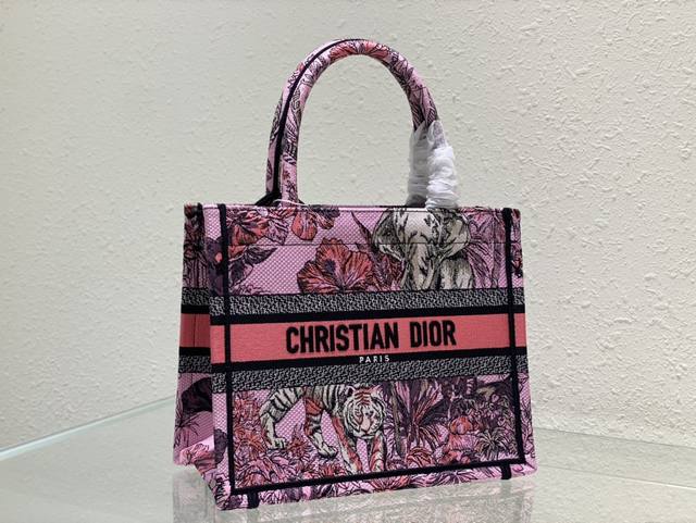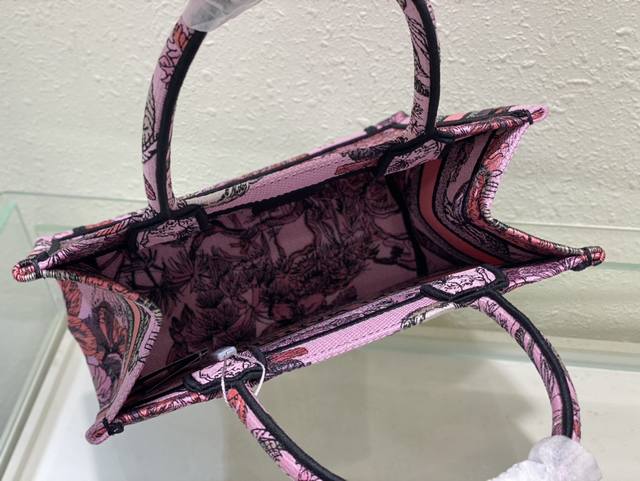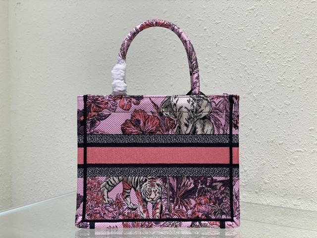 这款 Book Tote 手袋由 Dior 女装创意总监玛丽亚 嘉茜娅 蔻丽 Maria Grazia Chiuri 设计,是体现 Dior 审美的主打单品。采用粉色面料精心制作,通体饰以由彼得罗 鲁福 Pietro Ruffo 创作的多色 Voyage 茹伊印花图案刺绣,以富有印度风情的动植物衬托 Dior 先生的经典图案,可收纳各种日常用品。小号款式,正面饰以 Christian Dior Paris 标志,彰显 Dior 的精湛工艺,可手提或肩背。尺寸26Cm80