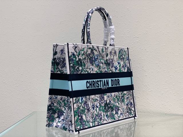这款 Book Tote 手袋由 Dior 女装创意总监玛丽亚 嘉茜娅 蔻丽 Maria Grazia Chiuri 设计,是体现 Dior 美学的主打产品。采用白色面料精心制作,通体饰以多色 Flowers Constellation 图案刺绣,展现花团锦簇的诗意世界。可收纳各种日常用品。大号款式,正面饰以 Christian Dior Paris 标志,彰显 Dior 的精湛工艺,可手提或肩背。尺寸:41Cm,款号8001