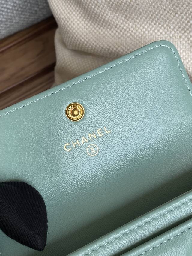 Chanel 新款口盖零钱包今年最新logo搭配大菱格,采用进口小羊皮与复古五金 这款卡包容量很大,一百块对2折能放一千左右,还能塞2.3张卡,很实用!款号a