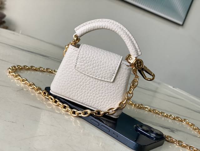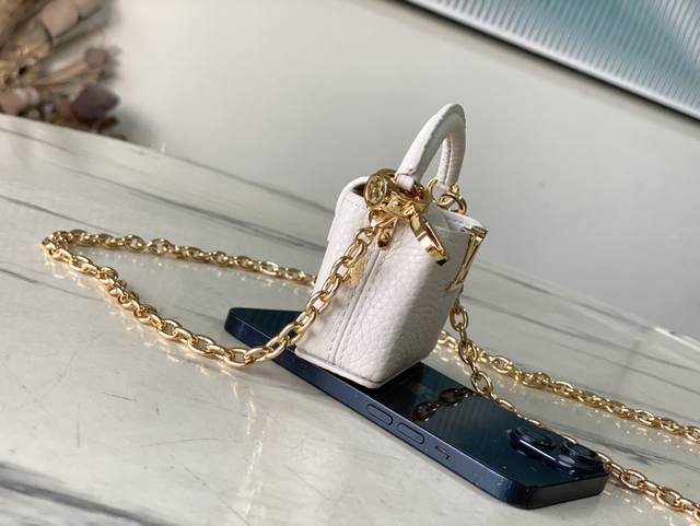 / 出厂价 原厂皮 M02132 Super Mini链条包micro Bag Capucines包饰取材丰盈牛皮革 以金属lv字母搭扣彰显华美格调 搭配monog