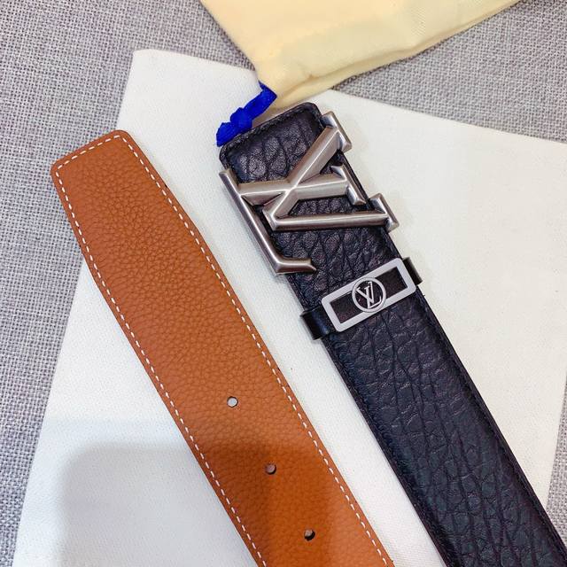 配正版包装,Lv路易威登正版同步精品扣,版型高档时尚,拼色双面原版皮带身,进口头层牛皮原厂皮质,双面可用,看工艺皮质即知,精细打磨五金扣件,好货上手即知, 制作工艺考究 宽度3.8Cm 高清实拍大图