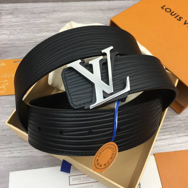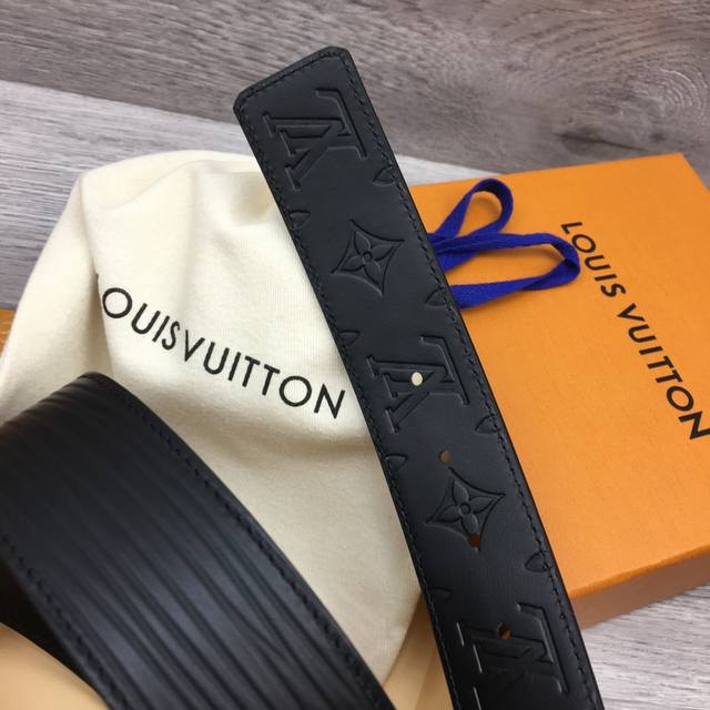 / Lv 意大利进口头层水波纹牛皮配压花皮底,搭配真空电镀拼色叠层纯铜扣,官网新款,专柜有售,市场顶级品质,支持验货 配送全套专柜包装,宽度 4.0Cm