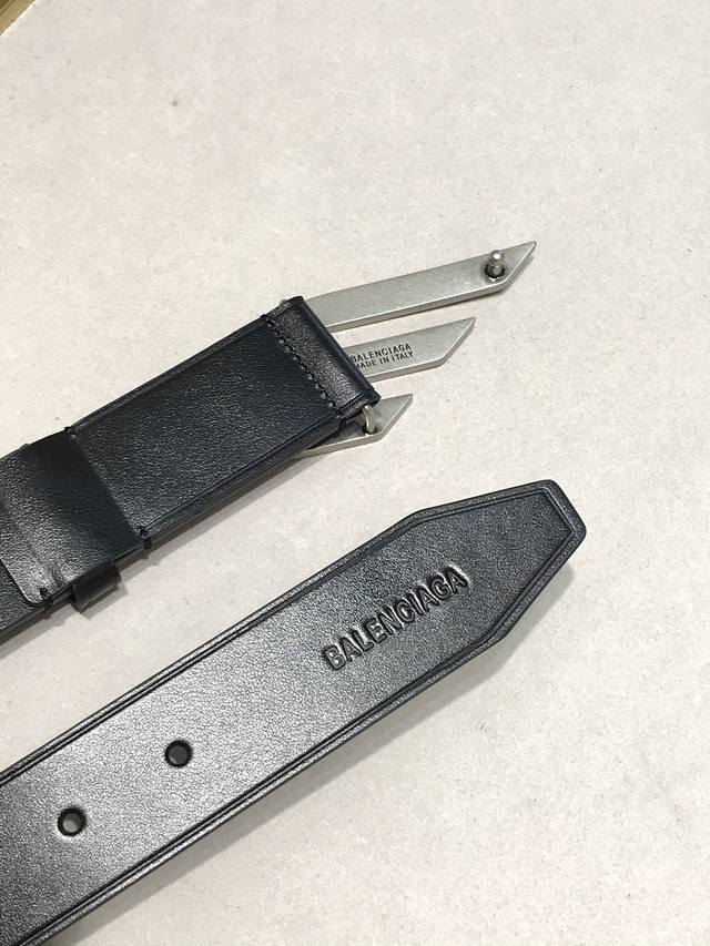 巴黎世家 -双面意大利进口头层小牛皮,搭配真空电镀仿古银扣,官网新款,专柜有售,市场顶级品质,支持验货 配送全套专柜包装,宽度 3.5Cm
