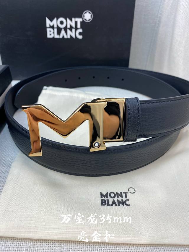 万宝龙 -意大利进口头层荔枝纹牛皮配平纹底,搭配真空电镀亮面纯铜扣,经典款式,专柜有售,市场顶级品质,支持验货 配送全套专柜包装,宽度 3.5Cm
