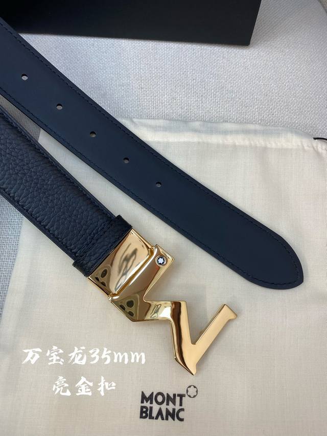 / 万宝龙 -意大利进口头层荔枝纹牛皮配平纹底,搭配真空电镀亮面纯铜扣,经典款式,专柜有售,市场顶级品质,支持验货 配送全套专柜包装,宽度 3.5Cm