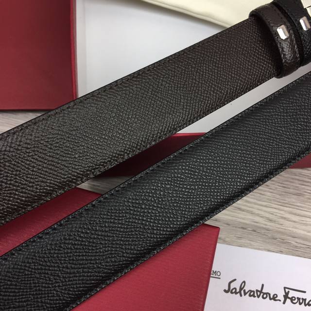 菲拉格慕 -双面意大利进口头层手掌纹牛皮,搭配真空电镀拉丝纯铜扣,经典款式,专柜有售,市场顶级品质,支持验货 配送全套专柜包装,宽度 3.5Cm