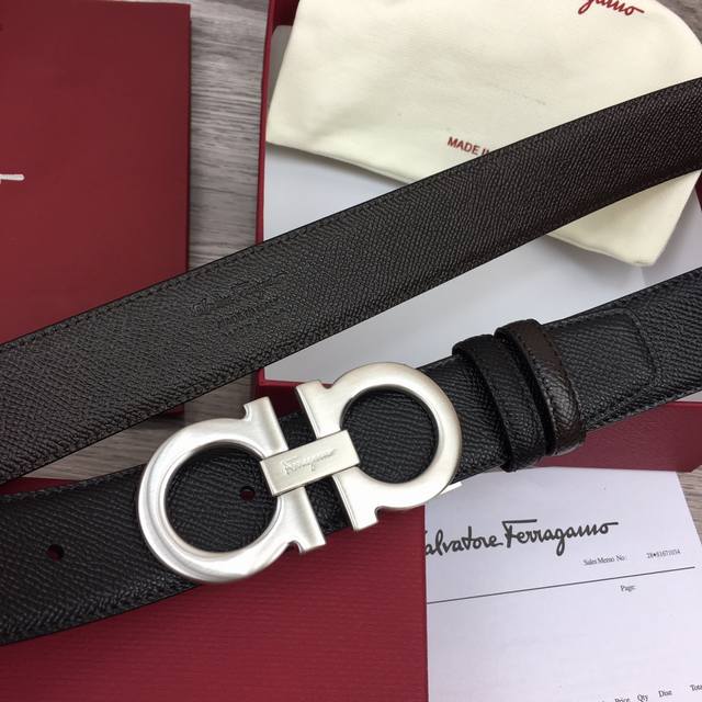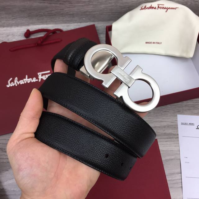 / 菲拉格慕 -双面意大利进口头层手掌纹牛皮,搭配真空电镀拉丝纯铜扣,经典款式,专柜有售,市场顶级品质,支持验货 配送全套专柜包装,宽度 3.5Cm
