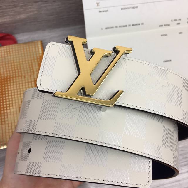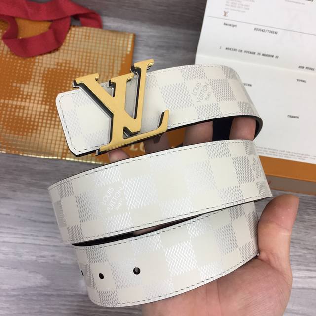 Lv -意大利进口头层丝印小牛皮配平纹底,搭配真空电镀亮面纯铜扣,经典款式,专柜有售,市场顶级品质,支持验货 配送全套专柜包装,宽度 4.0Cm