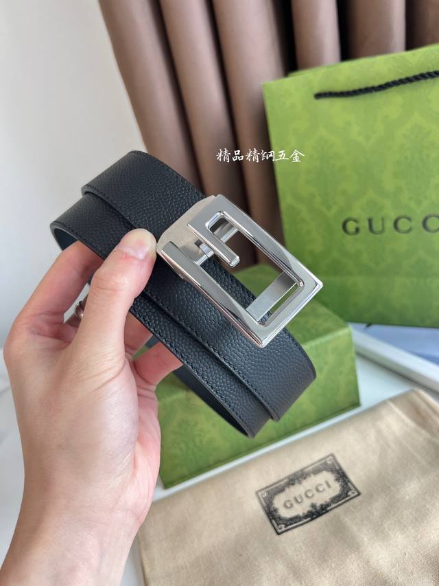 Gucci -意大利进口头层球纹小牛皮配平纹底,搭配真空电镀亮面纯钢自动扣,经典款式,专柜有售,市场顶级品质,支持验货 配送全套专柜包装,宽度 3.5Cm