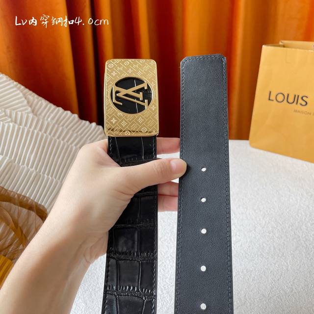 Lv -意大利进口头层鳄鱼纹牛皮配平纹底,搭配真空电镀花纹纯钢扣,经典款式,专柜有售,市场顶级品质,支持验货 配送全套专柜包装,宽度 4.0Cm