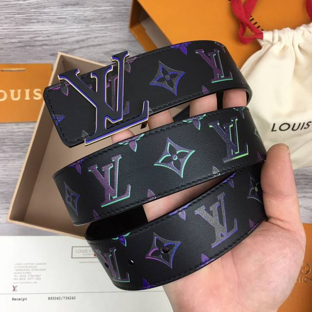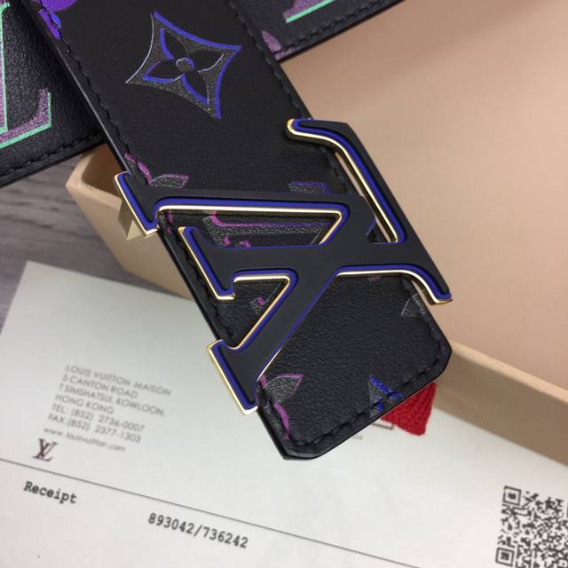 / Lv -意大利进口专柜专用印花涂层小牛皮配平纹底,搭配真空电镀磨胶纯铜扣,官网新款,专柜有售,市场顶级品质,支持验货 配送全套专柜包装,宽度 4.0Cm