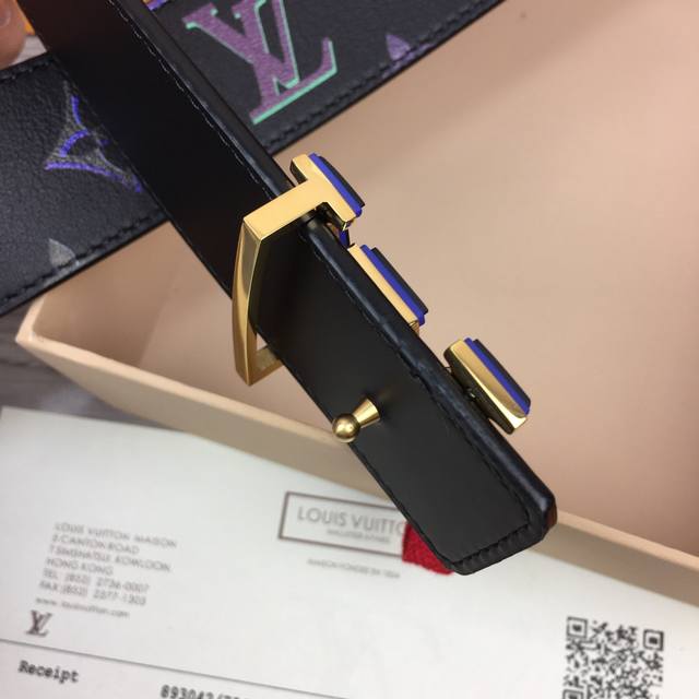 Lv -意大利进口专柜专用印花涂层小牛皮配平纹底,搭配真空电镀磨胶纯铜扣,官网新款,专柜有售,市场顶级品质,支持验货 配送全套专柜包装,宽度 4.0Cm