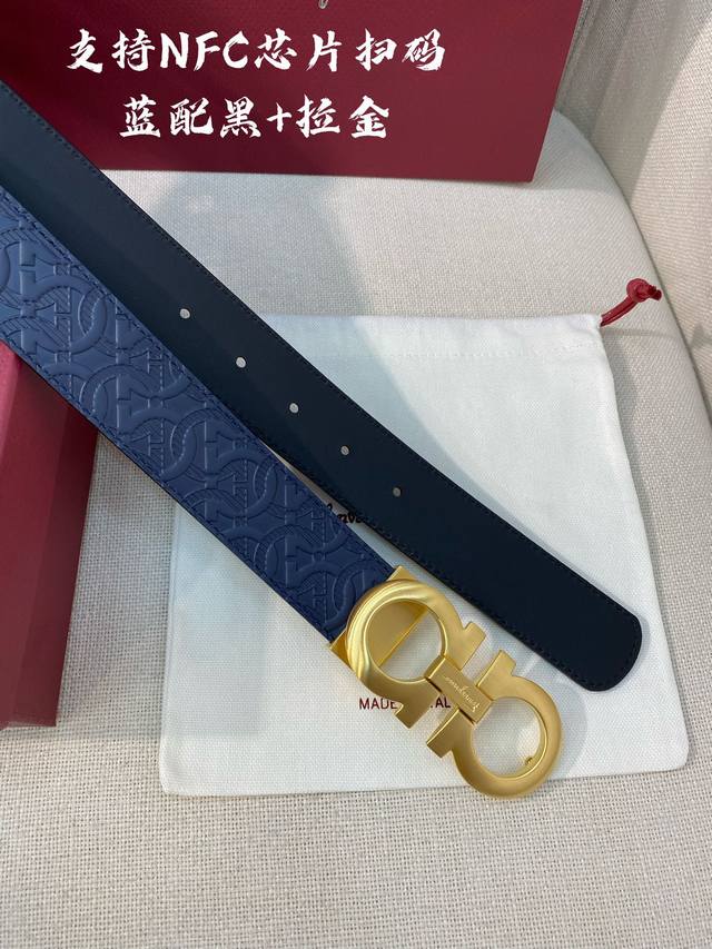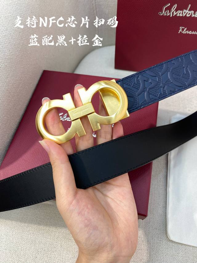 同步代购专供精品,菲拉格慕高端皮料系列! 精工细作纯钢自动款系列,真空电镀五金扣件,厚实皮料质感超赞,宽度3.4Cm...