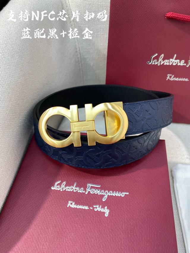 菲拉格慕 -意大利进口头层压花小牛皮配平纹底,搭配真空电镀拉丝纯铜扣,经典款式,专柜有售,市场顶级品质,支持验货 配送全套专柜包装,宽度 3.5Cm