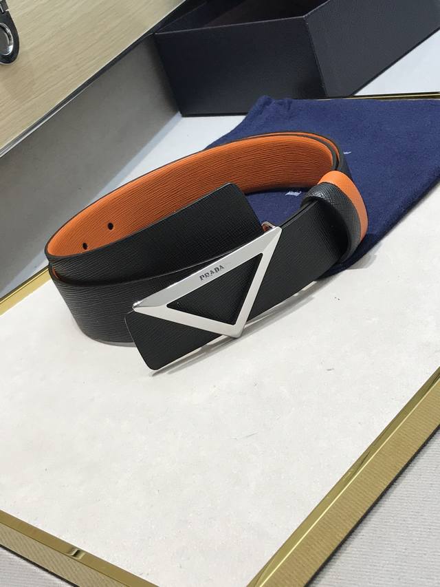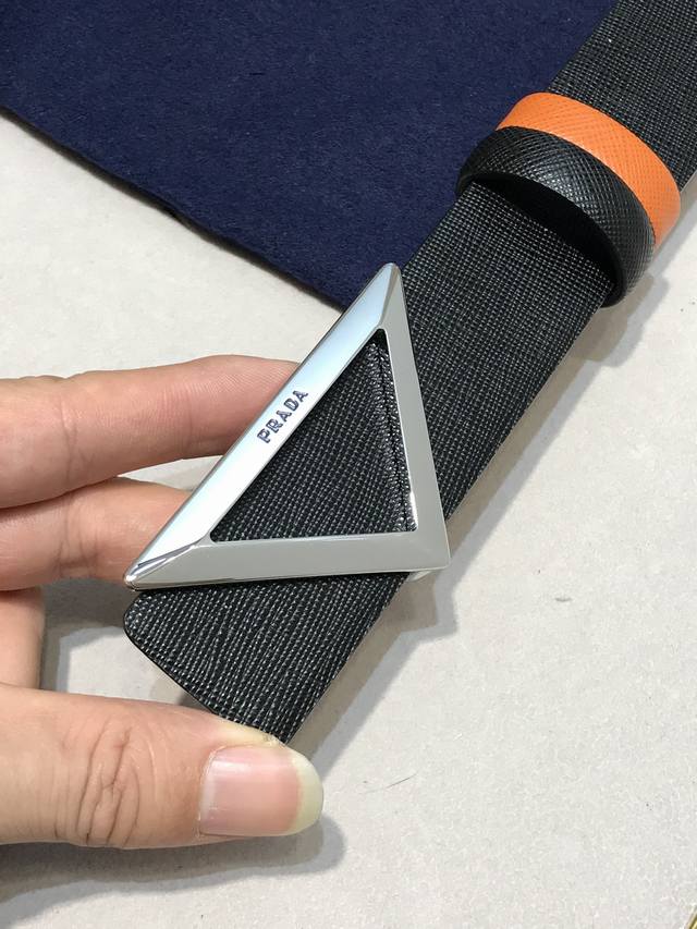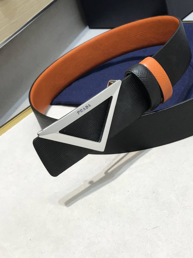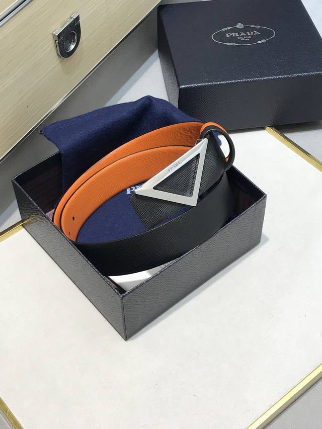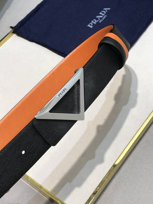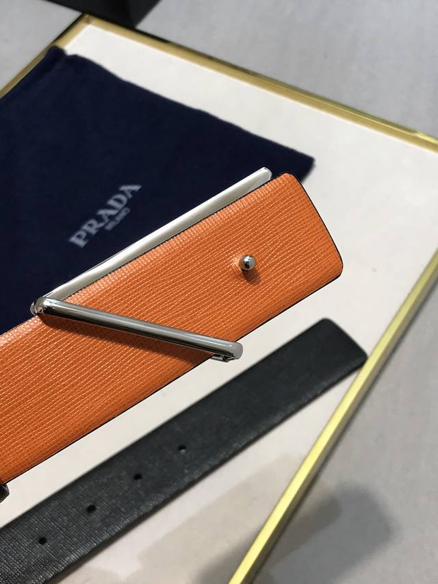 Prada -双面意大利进口头层十字纹牛皮,搭配真空电镀亮面镂空纯铜扣,官网新款,专柜有售,市场顶级品质,支持验货 配送全套专柜包装,宽度 3.5Cm