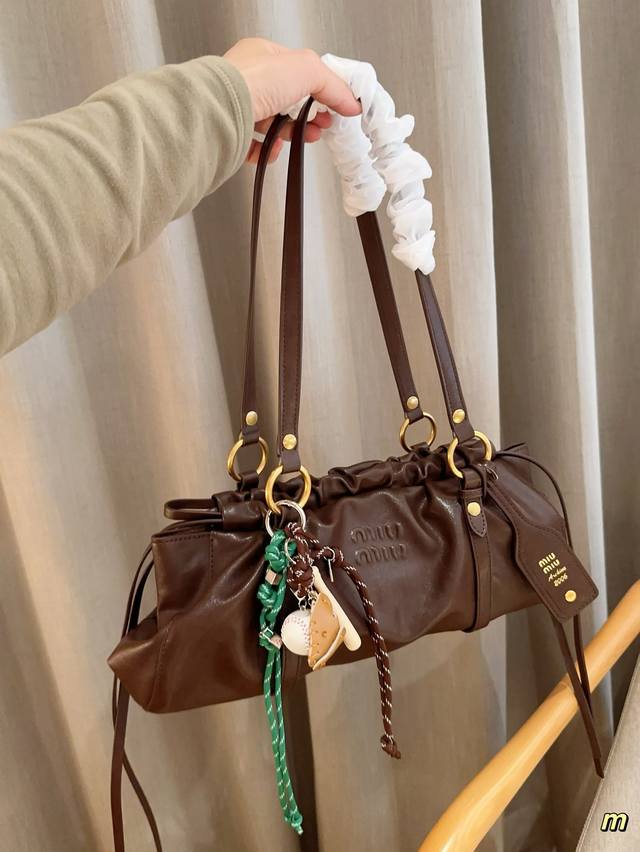 / 配送挂件 Miumiu缪缪 白鹿同款美拉德色系 复古机车包 尺寸40×20×5 礼盒包装