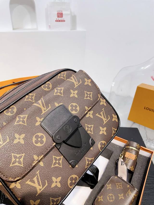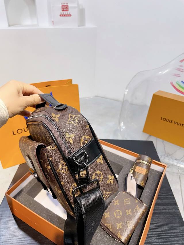 Lv胸包斜挎单肩包 采用精湛镶嵌细工 实物原厂原版面料 尺寸:16.29Cm