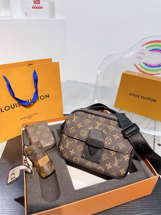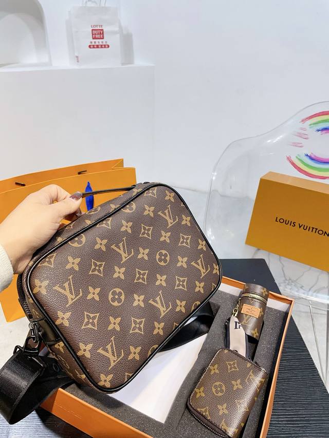 超值套盒 Size:24 17 6Cm 口红包挂件钱包 Lv老花邮差包 优雅低调的外形设计和宽敞的包身更加入了实用性 可调节肩带 拉链闭合 超细纤维内衬