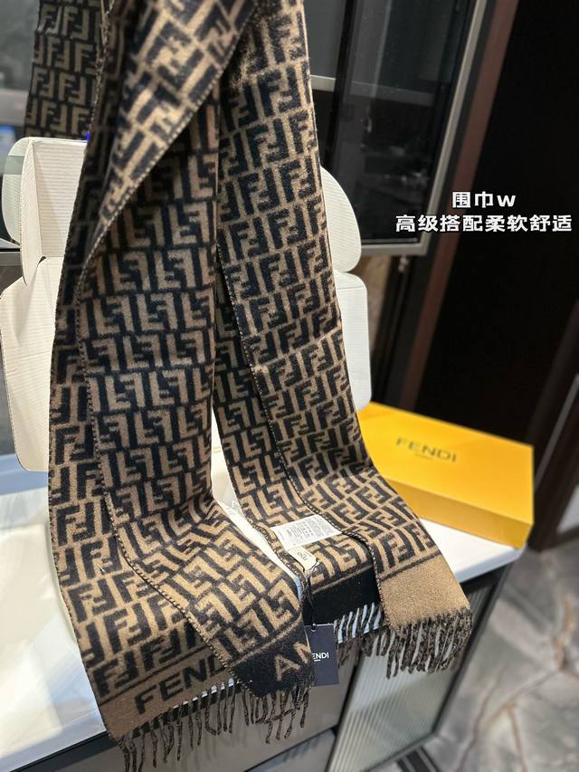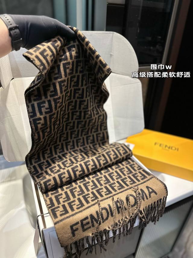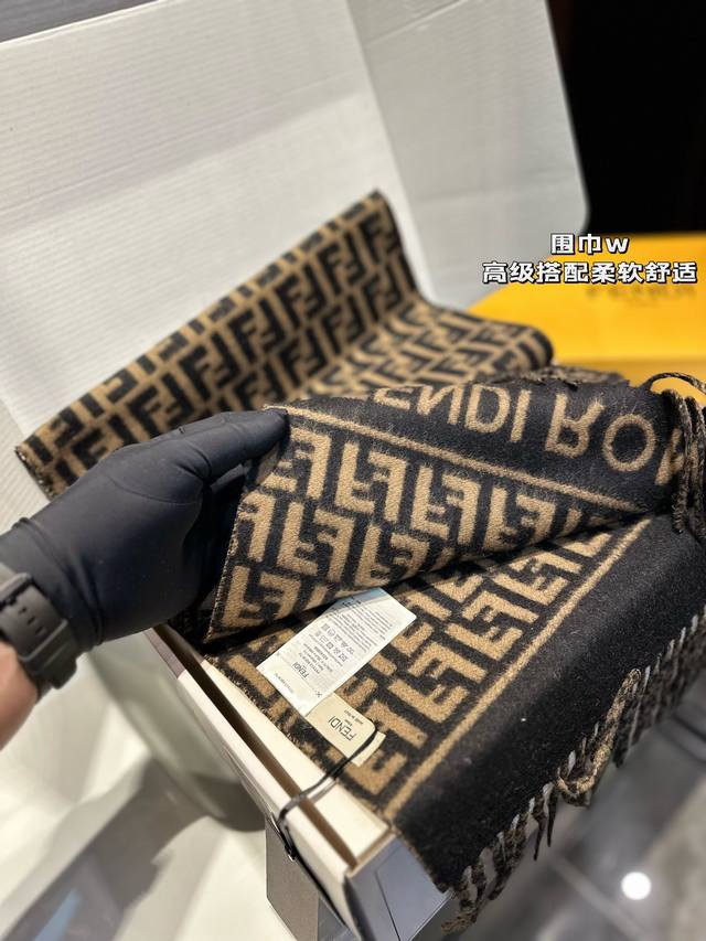 / 礼盒包装 Fendi 原单双面围巾 今年冬天是焦糖味的 羊绒围巾手感柔软 保暖效果非常好 很有腔调yyds 是真的