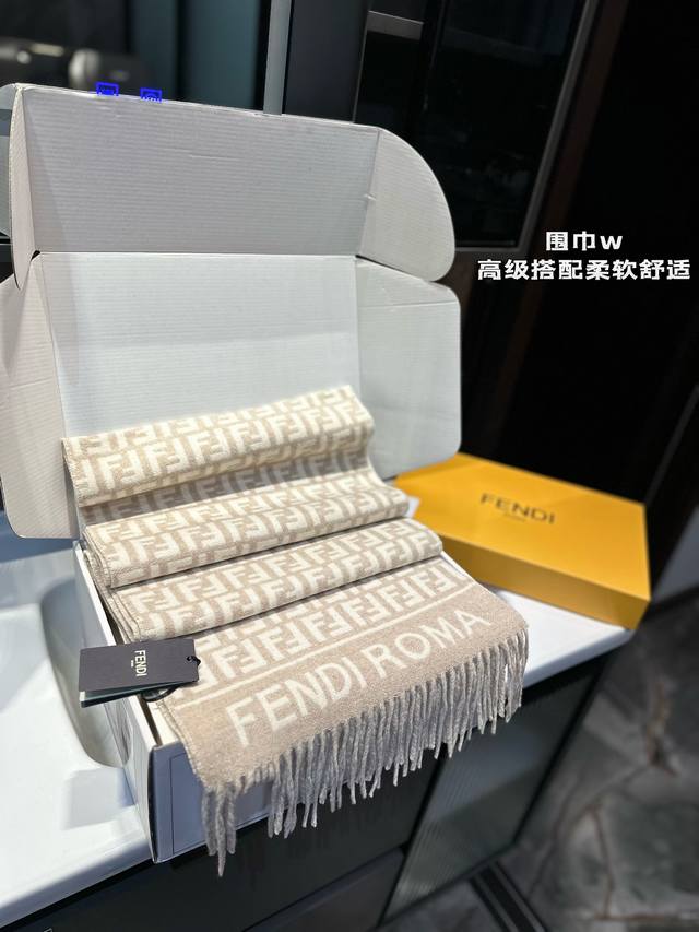 礼盒包装 Fendi 原单双面围巾 今年冬天是焦糖味的 羊绒围巾手感柔软 保暖效果非常好 很有腔调yyds 是真的