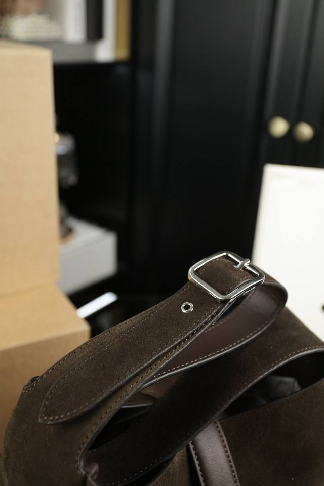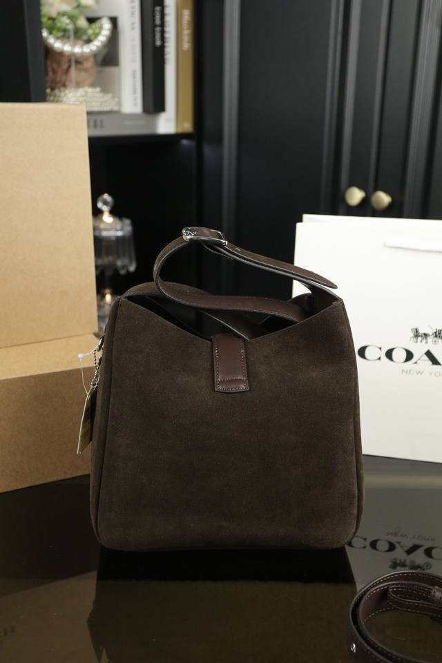 纯皮 配折叠盒 Coach蔻驰 Hadley 25 麂皮 水桶包腋下包单肩斜挎包 随性 松弛感拿捏最近的新品都爆好看 很喜欢这个很有味道的颜色秋冬必备系列包!