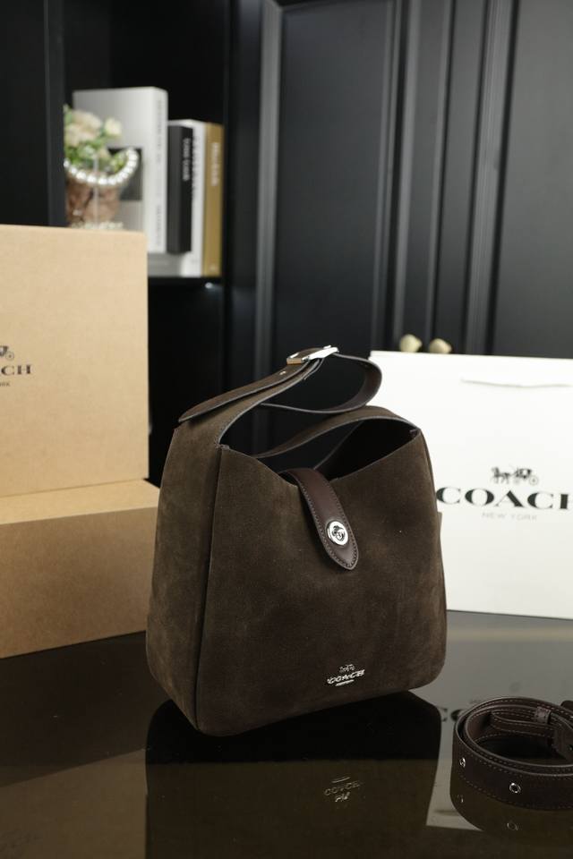 / 纯皮 配折叠盒 Coach蔻驰 Hadley 25 麂皮 水桶包腋下包单肩斜挎包 随性 松弛感拿捏最近的新品都爆好看 很喜欢这个很有味道的颜色秋冬必备系列包!